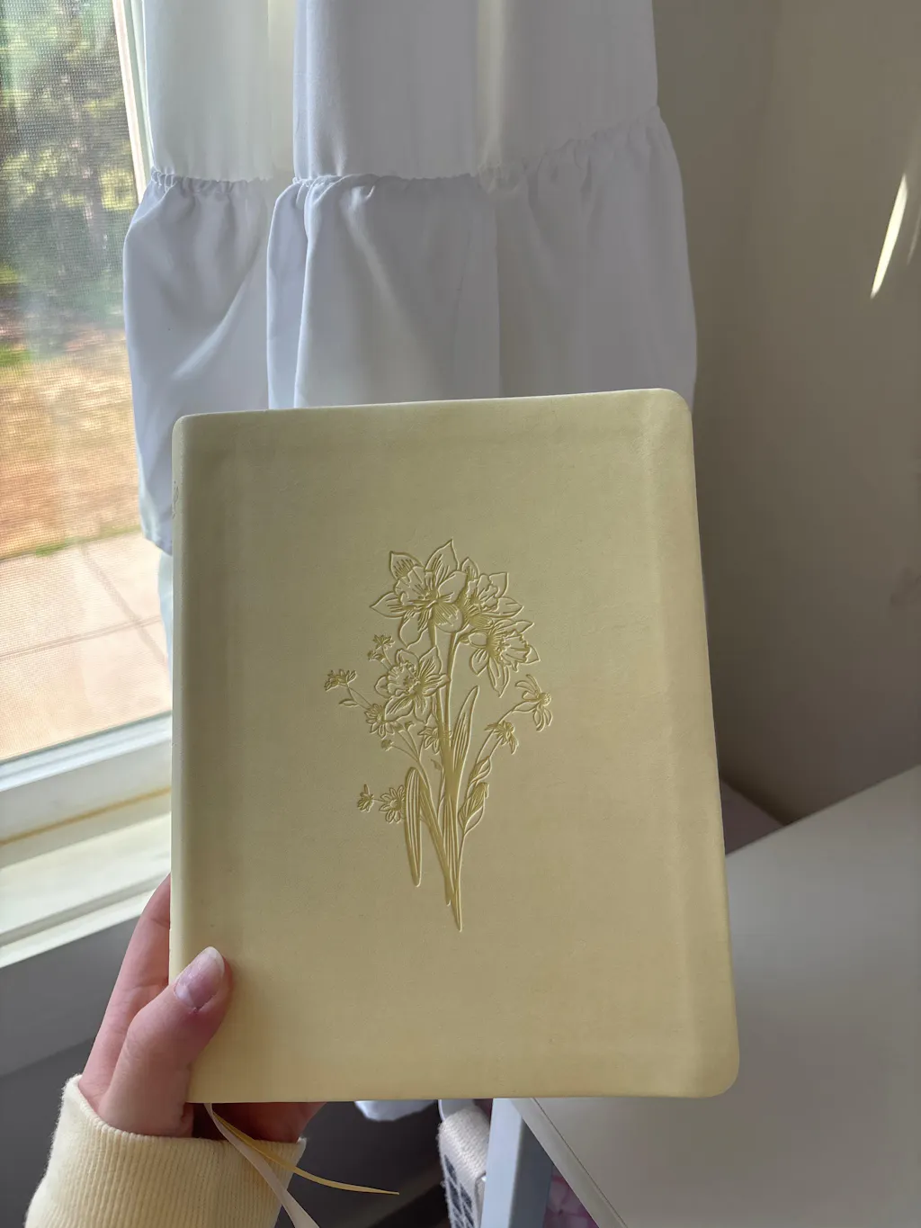 Our Belfast Bible’s delicate, soft yellow color features an embossed daffodil. After a long winter, the daffodil is the first to make its return in the spring. These flowers can endure harsh conditions, symbolizing a pure and gentle resilience, one we ourselves can receive through Christ’s strength within us. Through his power within us, we are able to endure, relying on his strength alone. The back of this Bible features Psalm 40:16: “May all who search for you be filled with joy and gladness in you,” a prayer that reminds us of the joy that comes when we seek the Lord, discovering his Word and learning more of his beautiful character. We pray that this Bible would remind you daily that he is a good father worthy of your full affection and devotion.