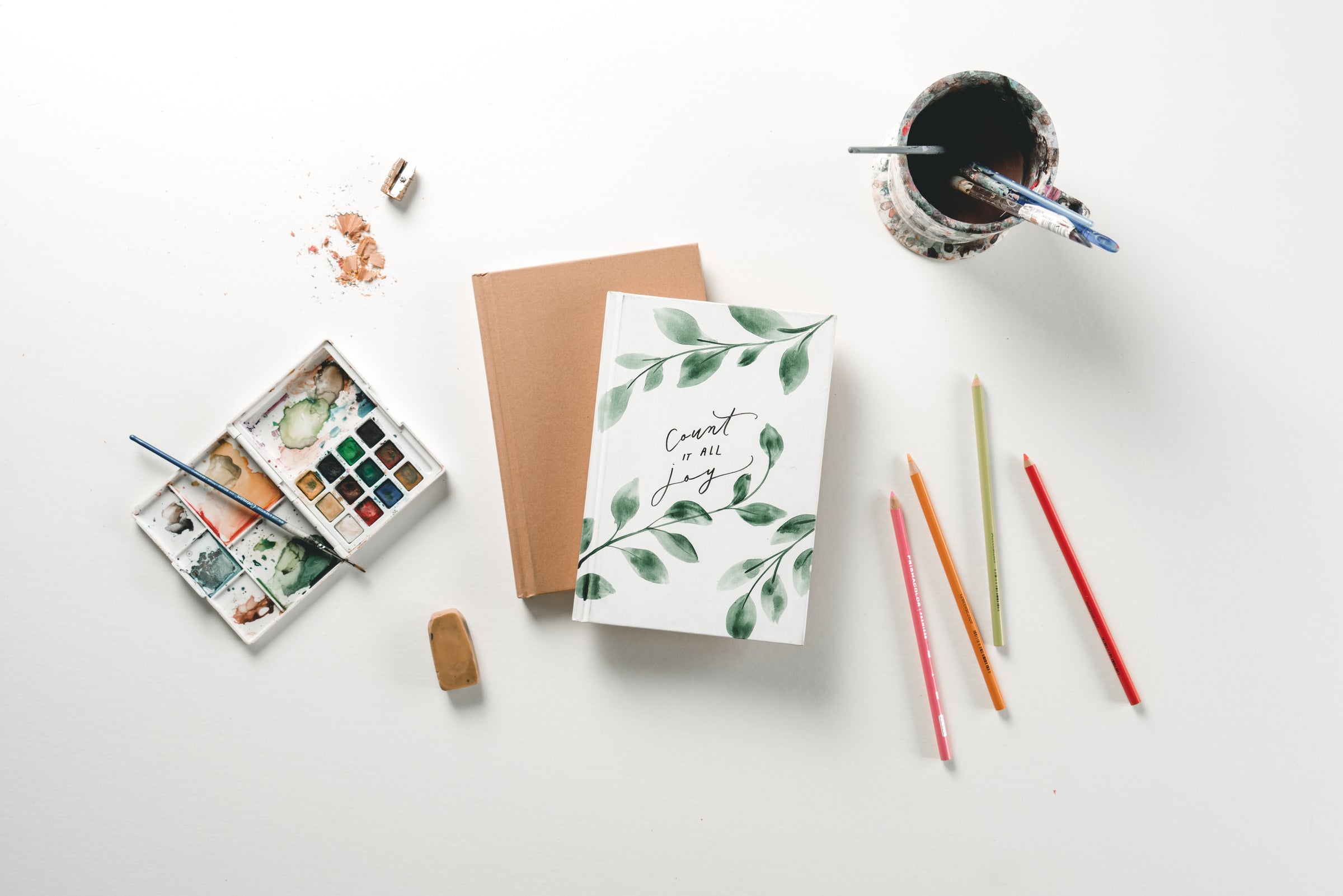 When you’re done with your journal, dried acrylic paint is not at risk to smear or rub off. If you chose to add words with one of the pens above to your journal, that IS at risk to rub off or fade over time. We would then recommend “sealing” your journal in some way! There are many options, but we use Krylon Matte Finish.